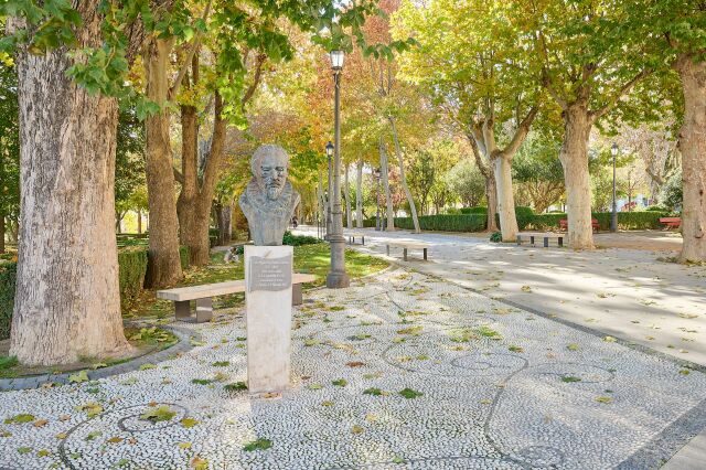 El visitante es recibido por un busto de Miguel de Cervantes, obra del escultor granadino Miguel Moreno, que invita a adentrarse en este espacio emblemático cargado de historia y tranquilidad. La reciente remodelación de la Plaza de las Eras y del Parque de la Alameda ha dado lugar a la mayor zona verde del centro histórico de la ciudad. Entre ambos espacios suman cerca de 35.000 metros cuadrados, convirtiéndose en un auténtico pulmón verde y un lugar ideal para el paseo y el descanso.